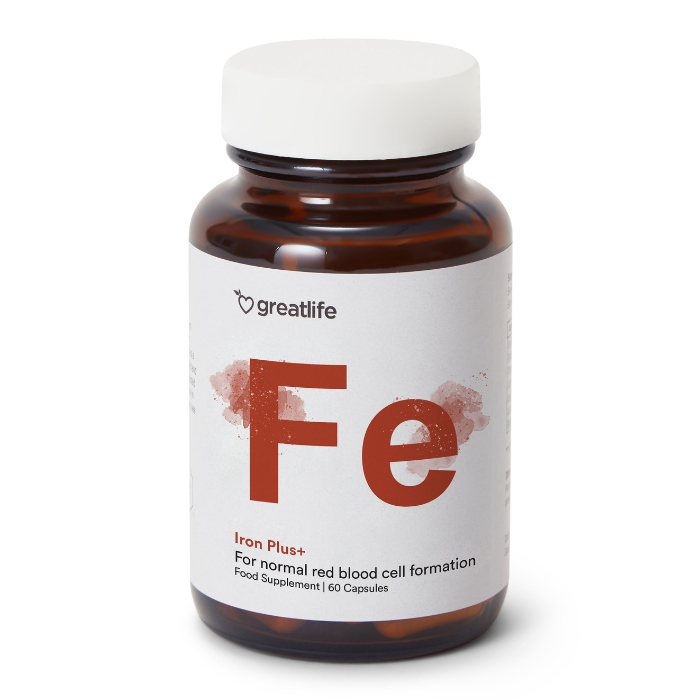 Iron Plus+ de Greatlife es un suplemento de hierro de la más alta calidad, desarrollado para apoyar la formación normal de la sangre, el transporte de oxígeno y la producción de energía. Iron Plus+ contiene hierro en forma de bisglicinato, con alta absorción y buena tolerancia digestiva, combinado con vitamina C, B6, folato y vitamina B12. La fórmula se complementa con cobre para contribuir al metabolismo normal del hierro. Iron Plus+ está libre de aditivos innecesarios y sustancias artificiales.